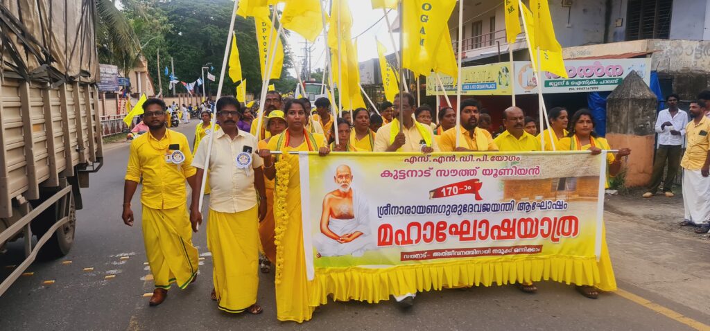 40 ശാഖകളിൽ നിന്നുള്ള അയ്യായിരത്തോളം പീതാംബരധാരികൾ അണിനിരന്നു കൊണ്ടുള്ള വർണ്ണപകിട്ടാർന്ന ഘോഷയാത്ര പച്ച ജംഗ്ഷനിൽ നിന്ന് ആരംഭിച്ച് എടത്വ ടൗണിൽ എത്തി വെട്ടുതോട് പാലത്തിന് സമീപം സമാപിച്ചു.