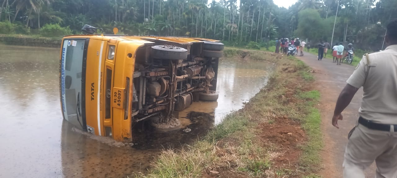 കോടുകുളഞ്ഞി ക്രൈസ്റ്റ് ചര്ച്ച് വിദ്യാപീഠം സ്കൂളിന്റെ ബസാണ് റോഡില് നിന്നും മാമ്പ്ര പാടത്തേക്ക് മറിഞ്ഞത്. 24 കുട്ടികള് ബസില് ഉണ്ടായിരുന്നു.