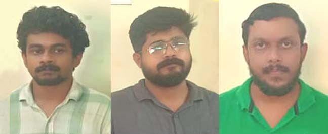 ചെങ്ങന്നൂര് കല്ലിശ്ശേരി സ്വദേശികളായ ജെത്രോ വര്ഗ്ഗീസ് (27), സഹോദരന് ജൂവല് വര്ഗ്ഗീസ് (31), സുഹൃത്ത് സോനു രാജു (32) എന്നിവരെ കോട്ടയം എക്സൈസ് സ്പെഷ്യല് സ്ക്വാഡ് സര്ക്കിള് ഇന്സ്പെക്ടര് പി. ശ്രീരാജിന്റെ നേതൃത്വത്തിലുള്ള സംഘം അറസ്റ്റ് ചെയ്തു. ഇവരില് നിന്നും 3.5 ഗ്രാം എംഡിഎംഎ, 20 ഗ്രാം കഞ്ചാവ് എന്നിവ കണ്ടെടുത്തു.