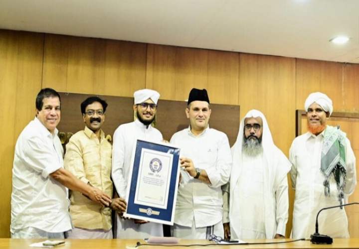 ലോകത്തിലെ ഏറ്റവും നീളമുള്ള ഖുര്ആന് കാലിഗ്രഫി സ്വന്തം കൈപ്പടയില് എഴുതി ഗിന്നസ് റെക്കോര്ഡില് ഇടം നേടാന് കഴിഞ്ഞതിന്റെ സന്തോഷത്തിലാണ് ഒരു വിദ്യാര്ത്ഥി. പട്ടിക്കാട് ജാമിഅ നൂരിയ്യ രണ്ടാംവര്ഷ വിദ്യാര്ഥിയായ മുഹമ്മദ് ജസീമാണ് ഈ വേറിട്ട നേട്ടം സ്വന്തമാക്കിയത്. 1106 മീറ്റര് നീളത്തില് വിശുദ്ധ ഖുര്ആന് മുഴുവനും കൈകൊണ്ട് എഴുതിത്തയാറാക്കിയാണ് ജസീം ഈ നേട്ടം കൈവരിച്ചത്.