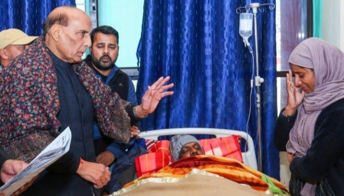 പൂഞ്ചിൽ പരിക്കേറ്റ സാധാരണക്കാരെ കണ്ട് രാജ്നാഥ് സിംഗ്